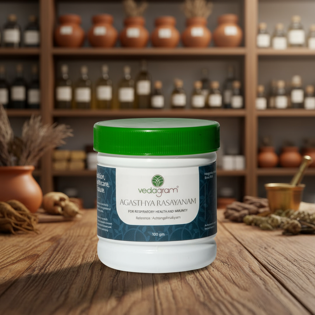 Agasthya Rasayanam is a traditional Ayurvedic preparation known for supporting respiratory health. Made with herbs like Dashamoola and Vasaka, it helps cleanse the respiratory tract, improve breathing comfort, and boost overall immunity.