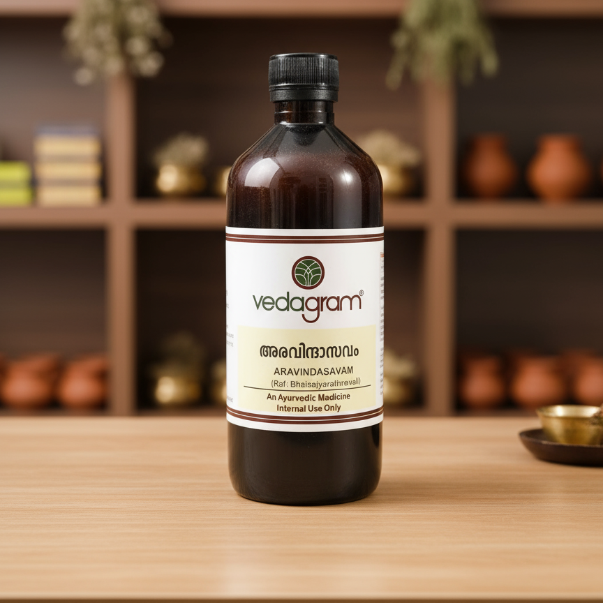 Aravindasavam is a classical Ayurvedic tonic formulated especially for children to support healthy growth, digestion, and overall development. It is enriched with herbs like Aravinda (lotus) that help improve appetite, strength, and immunity.