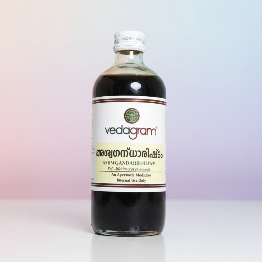 Aswagandharishtam is a classical Ayurvedic tonic known for improving strength, vitality, and overall energy levels. It helps reduce stress, supports better sleep, and enhances general wellness.