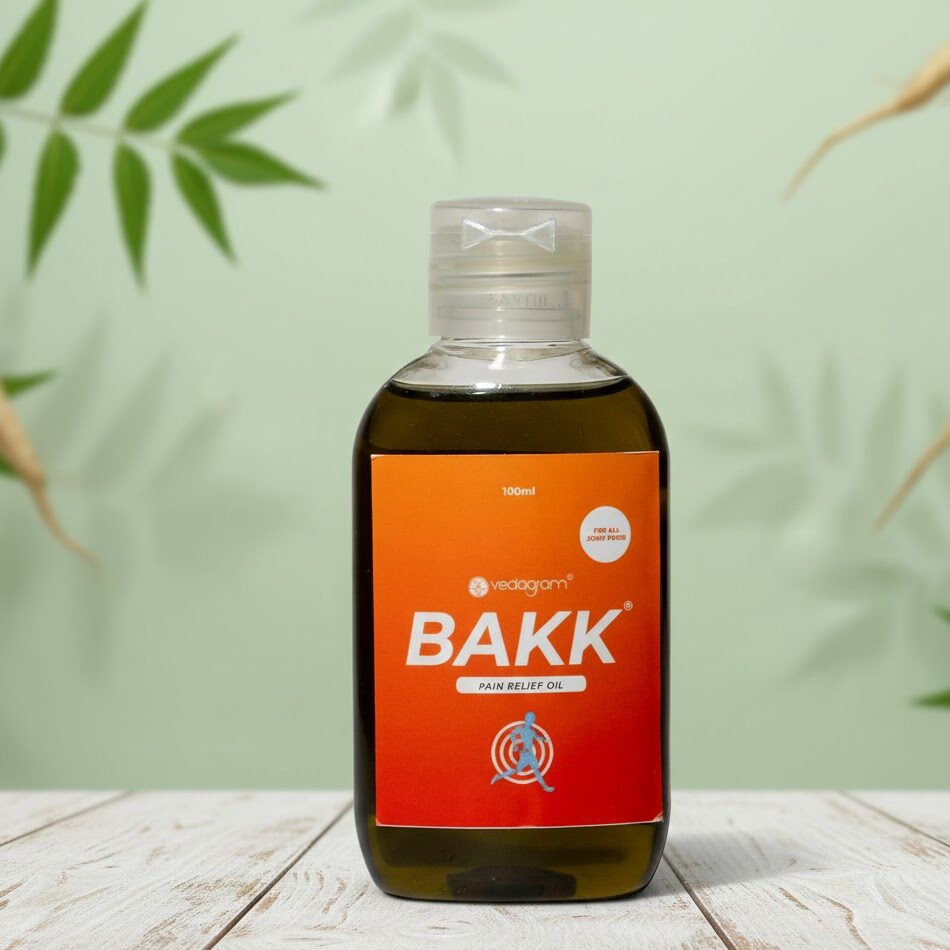 BAKK Pain Oil is a patented Ayurvedic pain-relief formulation developed by the expert doctors of Vedagram. It provides quick relief from joint pain, muscle pain, stiffness, and strain, supporting smooth mobility and daily comfort.