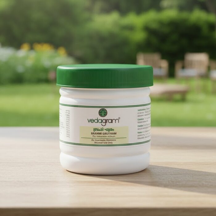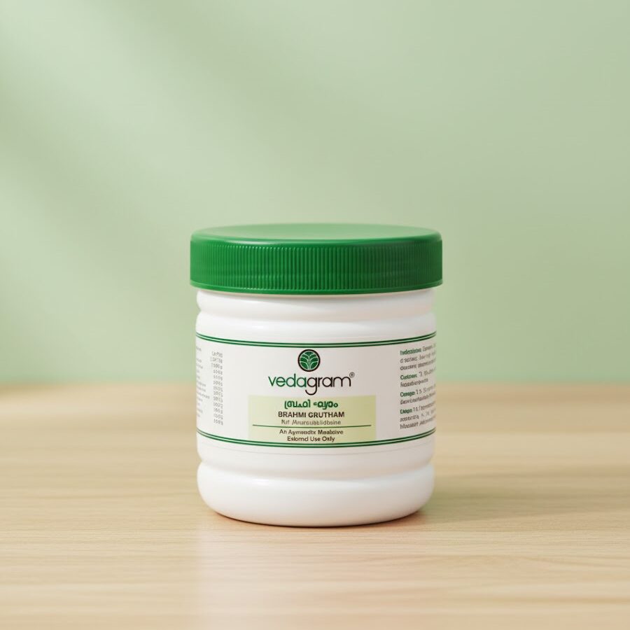 Brahmi Ghritam is a traditional Ayurvedic medicated ghee formulated with Brahmi and other herbs known for supporting cognitive health. It helps improve memory, focus, learning ability, and overall mental clarity. Commonly used for stress, weak concentration, and supporting the nervous system.