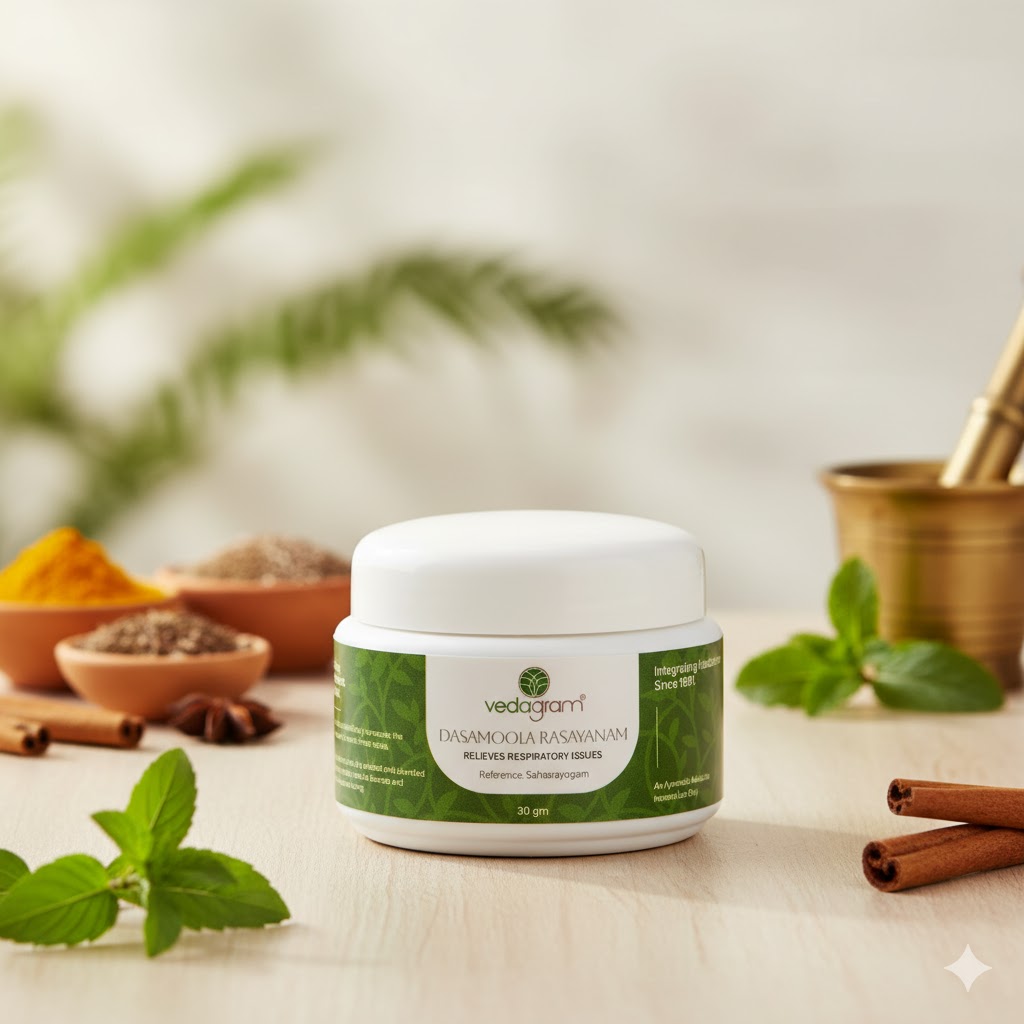 Dashamoola Rasayanam is a traditional Ayurvedic formulation prepared with the Dashamoola group of roots to support respiratory health, improve digestion, and promote overall rejuvenation. It helps reduce fatigue, strengthens the body, and supports natural healing.