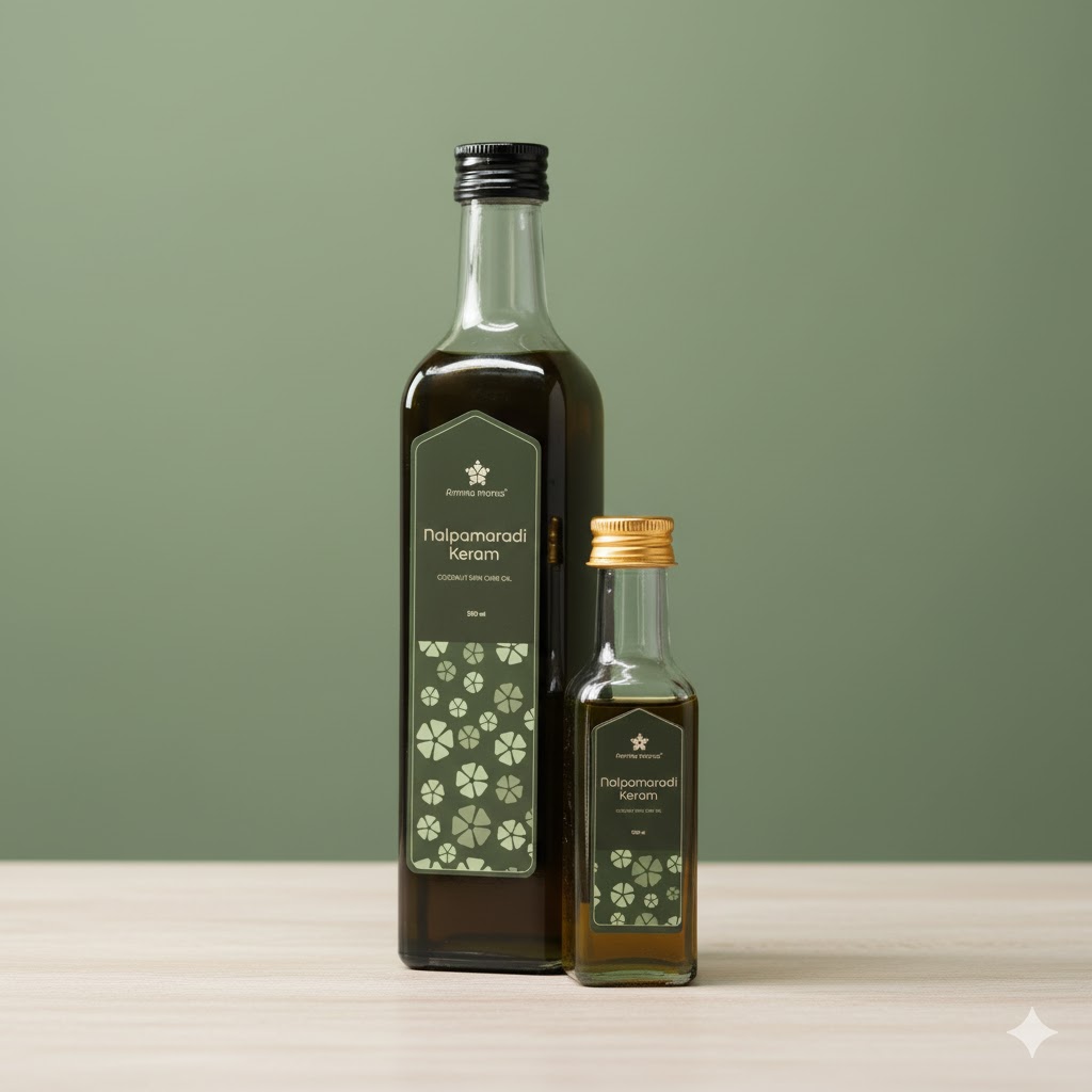 An Ayurvedic skin brightening and detoxifying oil prepared in coconut oil base. Made with Nalpamara (four types of ficus trees), it is excellent for improving complexion, healing skin rashes, eczema, pigmentation, and sun tan. Regular application evens out skin tone and reduces skin inflammation.