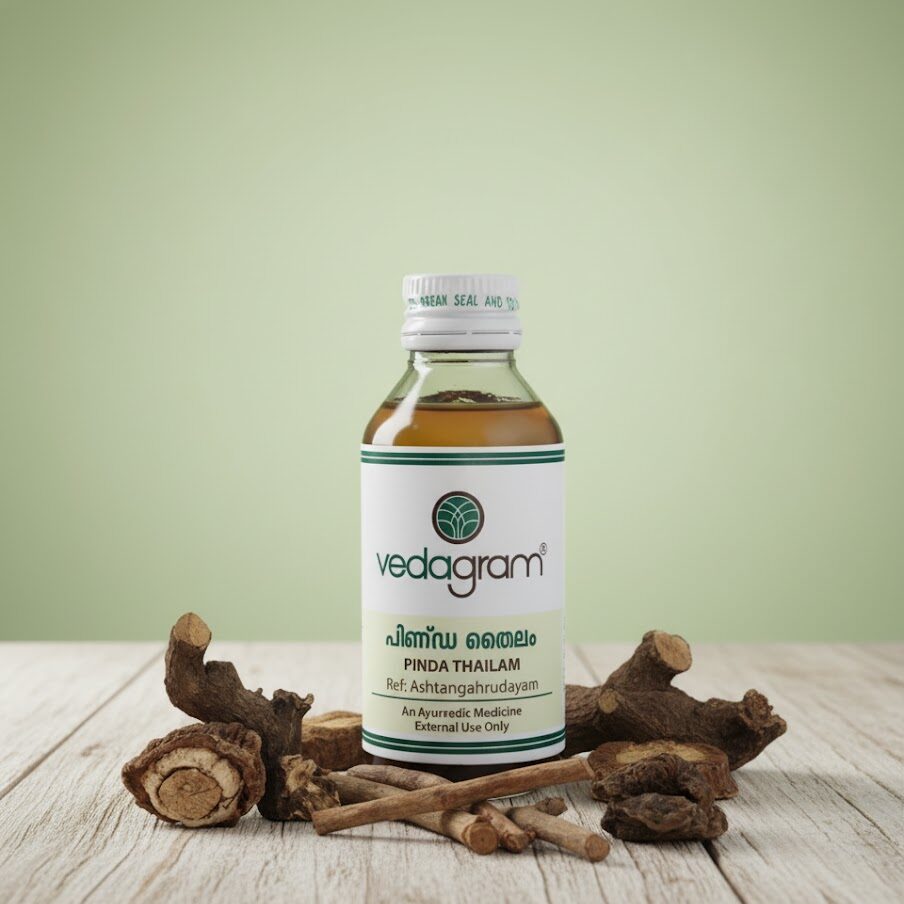 Pinda Thailam is a classical Ayurvedic medicated oil used for soothing inflammation, reducing burning sensations, and relieving joint and muscle discomfort. Known for its cooling and calming action, it is ideal for conditions like gout, arthritis, and inflammatory swelling.