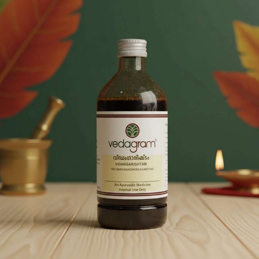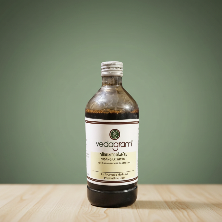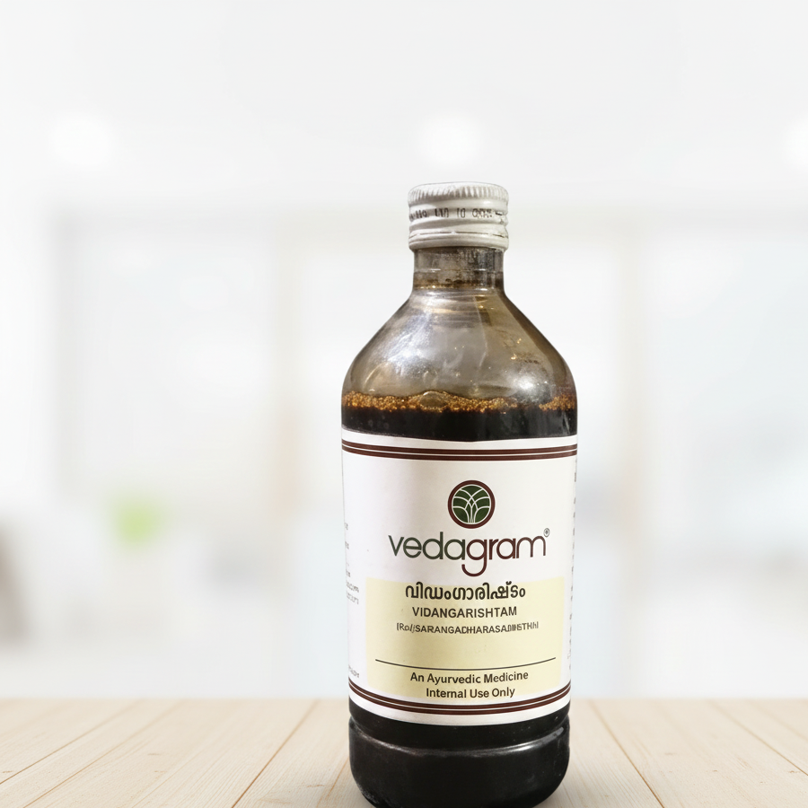 Vidangarishtam is a traditional Ayurvedic fermented tonic that supports digestive health and helps manage intestinal parasites. Known for improving appetite, reducing bloating, and promoting healthy gut function, it is commonly used for overall digestive strengthening.